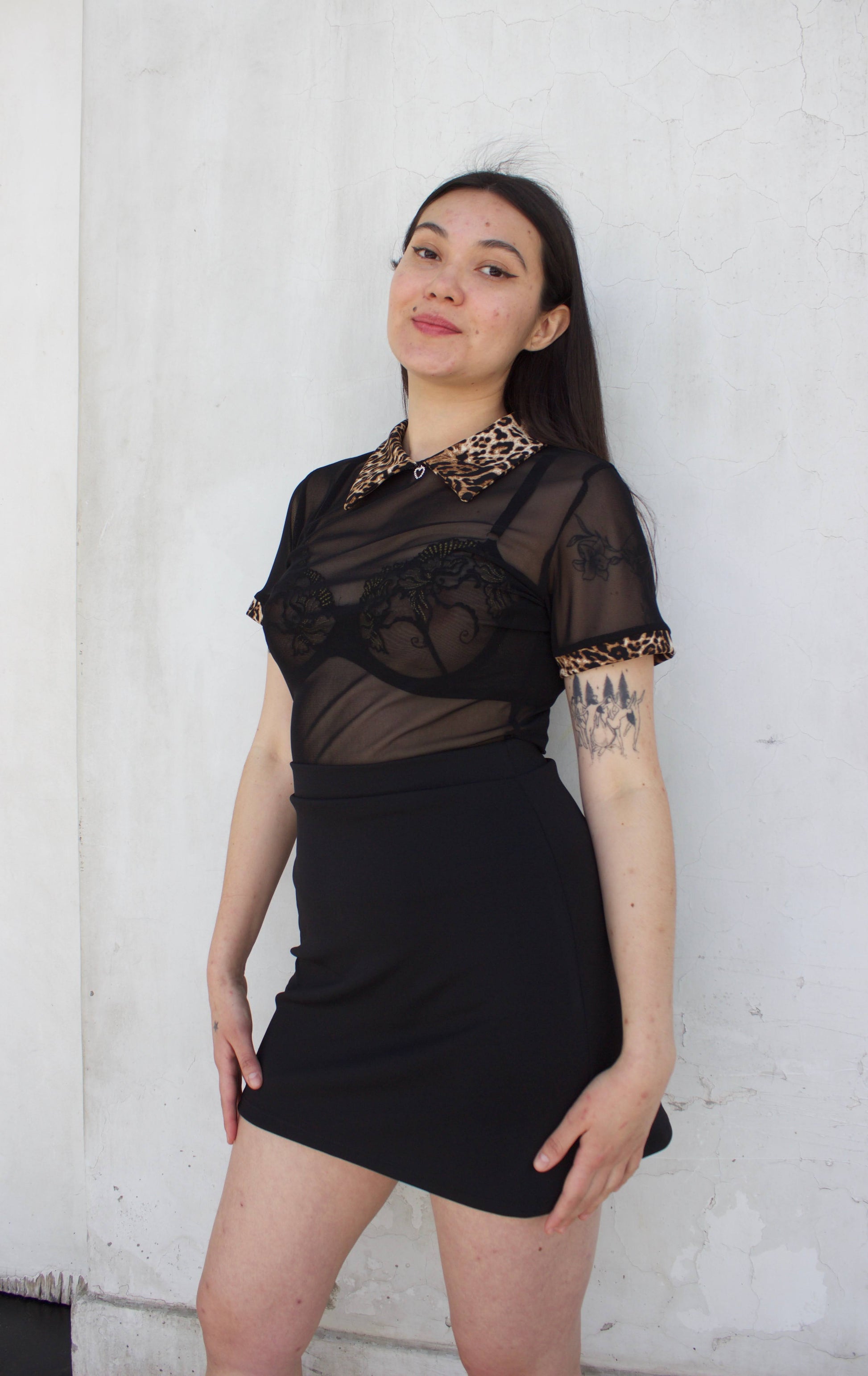 Complementa tu look con esta falda básica, hecha en tela Scuba negra, es elasticada y firme. Pretina en la cintura.
