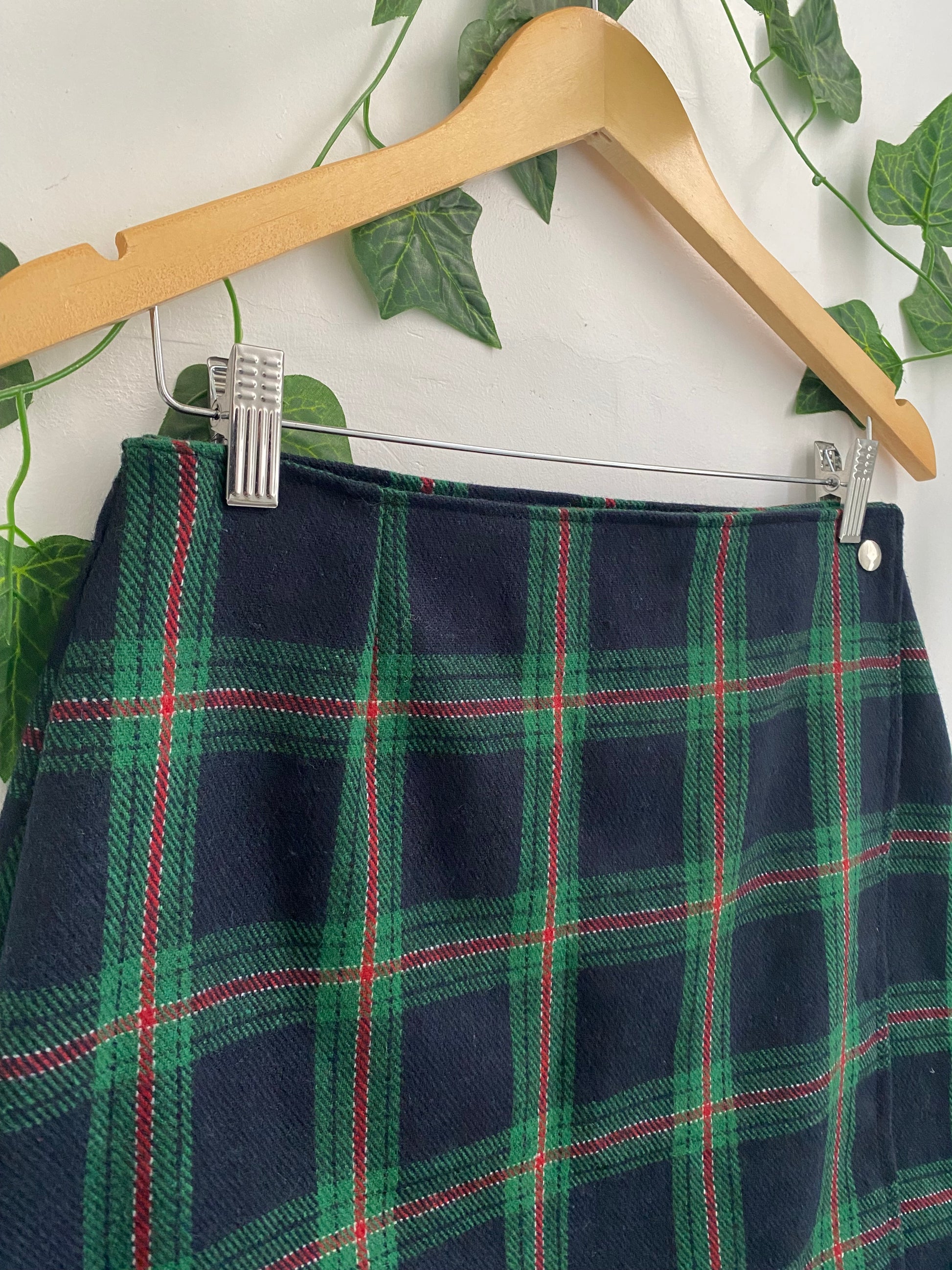 Falda cruzada tartán verde, tela paño gruesa, perfecta para los días fríos