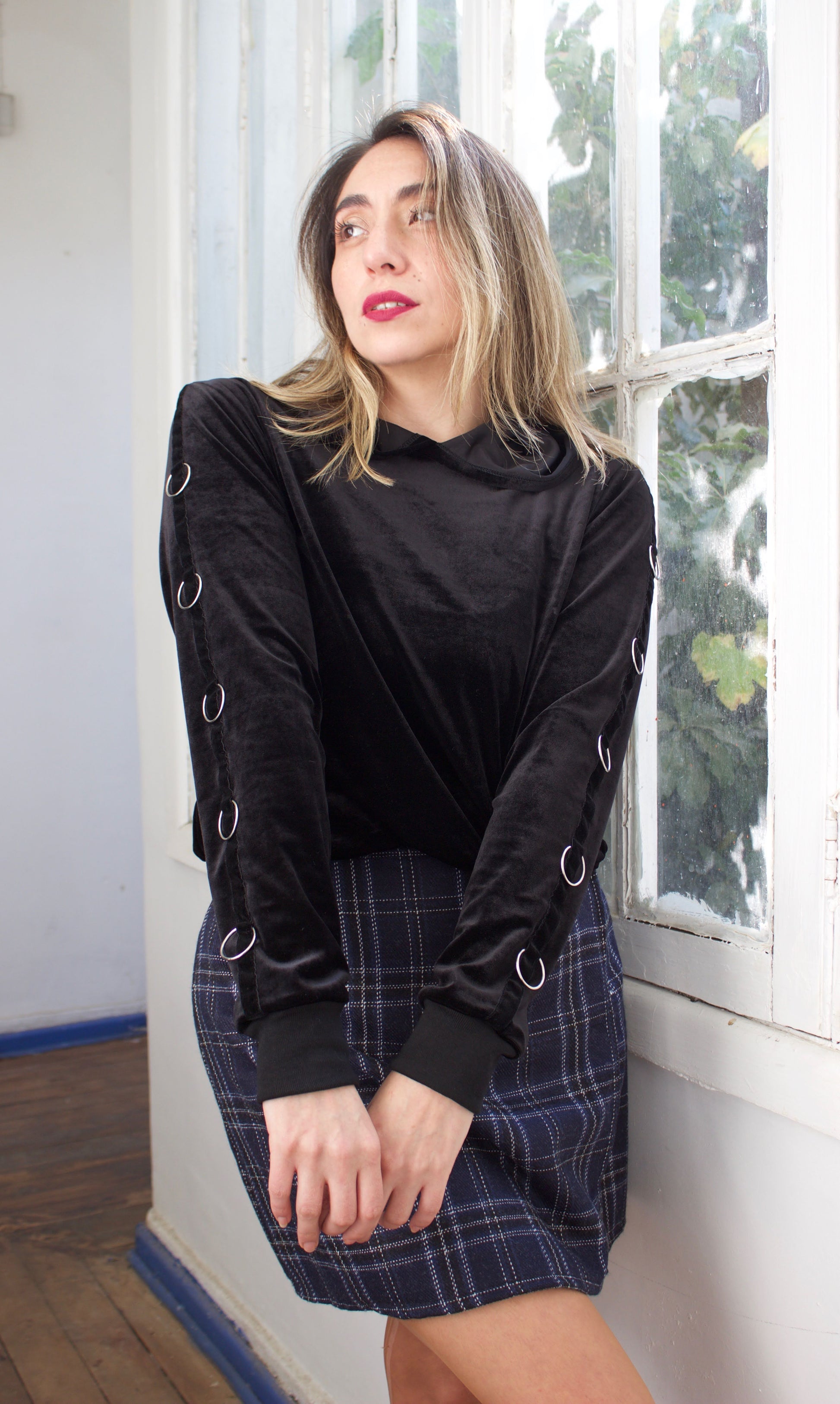 Polerón con capucha de terciopelo elasticado, suave y liviano.